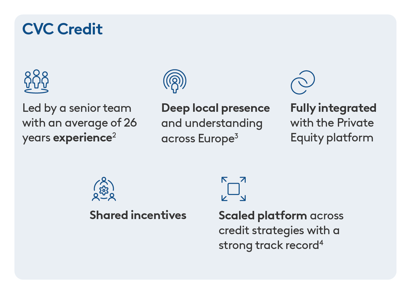 CVC-CRED gives investors access to CVC’s European sourcing network and investment platform, proven across multiple cycles.