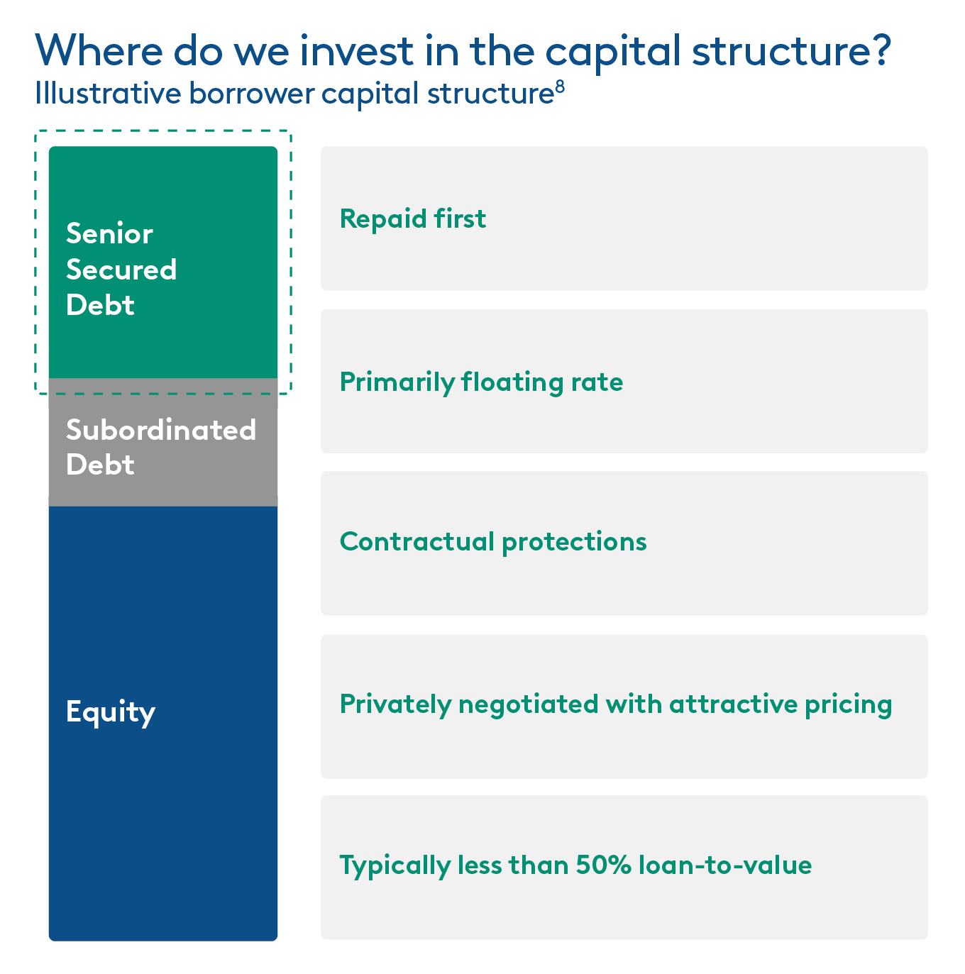 Together, these advantages translate into high-quality proprietary deal flow for our Investment Committee, allowing them to remain highly selective while securing resilient documentation and strong yields.