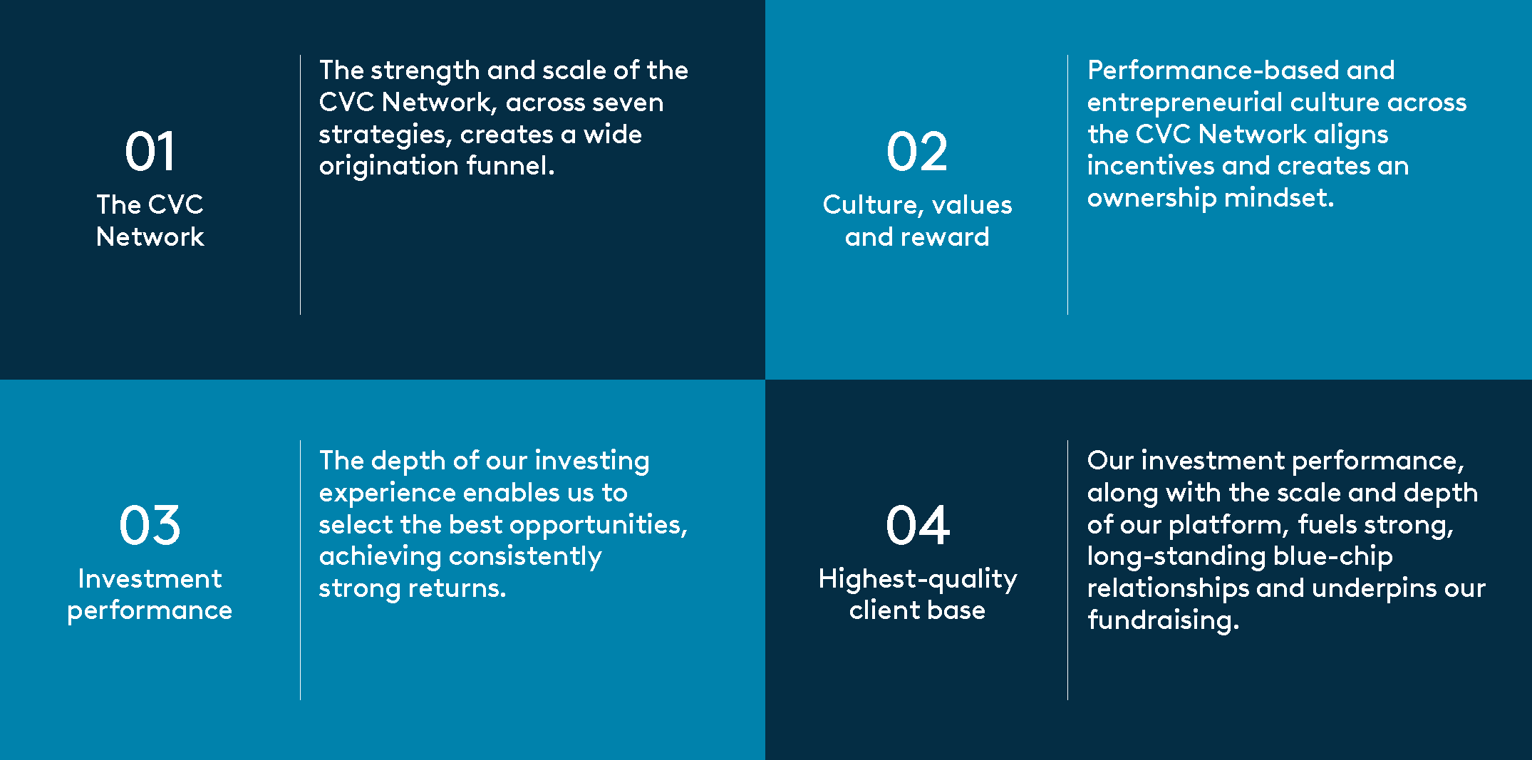 The CVC Network, our unique culture, investment performance and client base underpin our success.